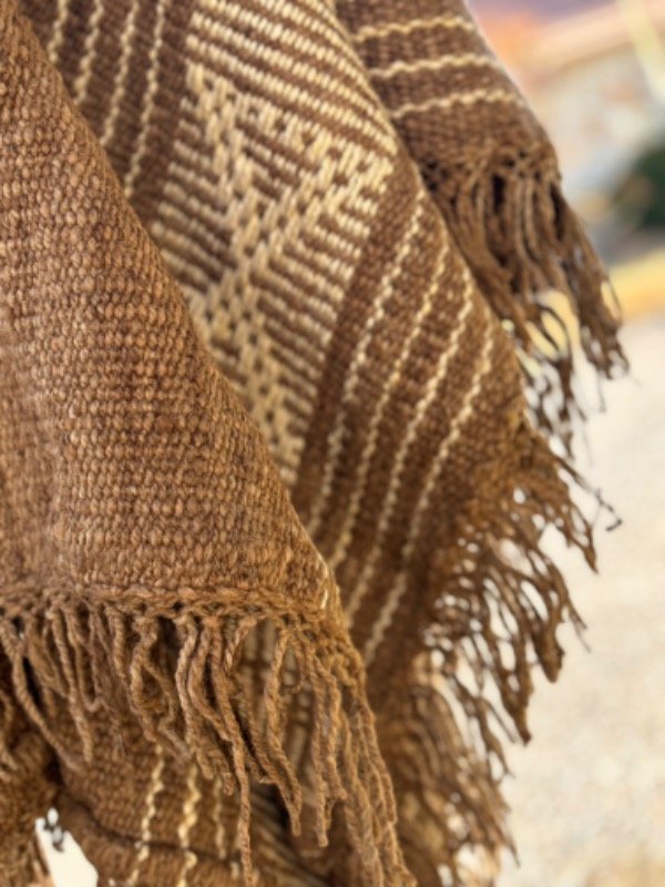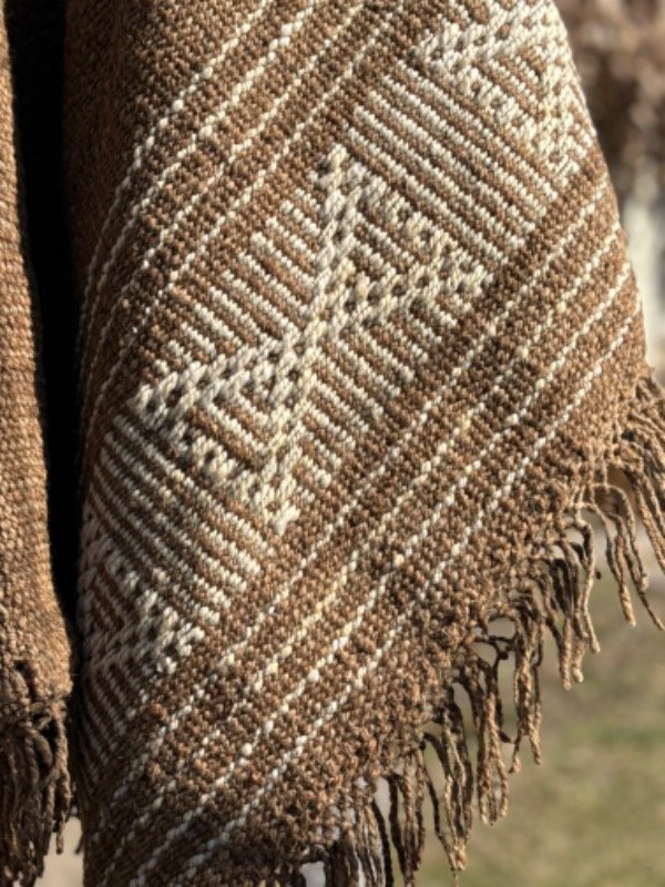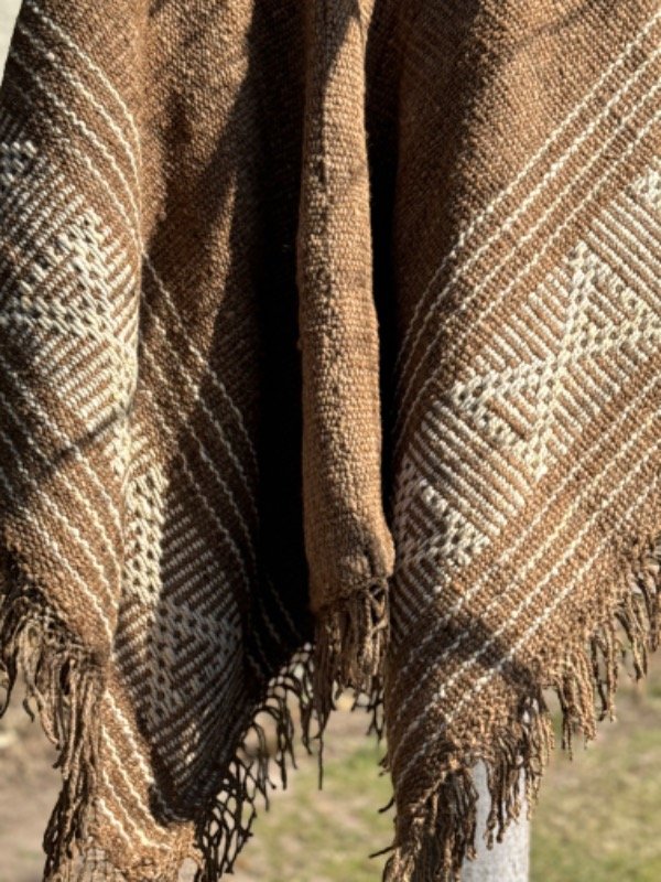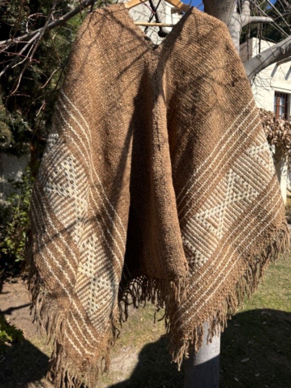 Poncho Tejido en Telar Artesanal de Pedal, 100%Lana de Oveja Hilado Medio a Mano. Tinturas naturales.