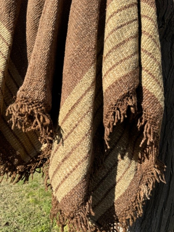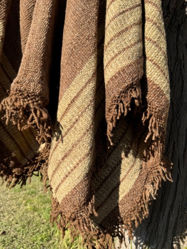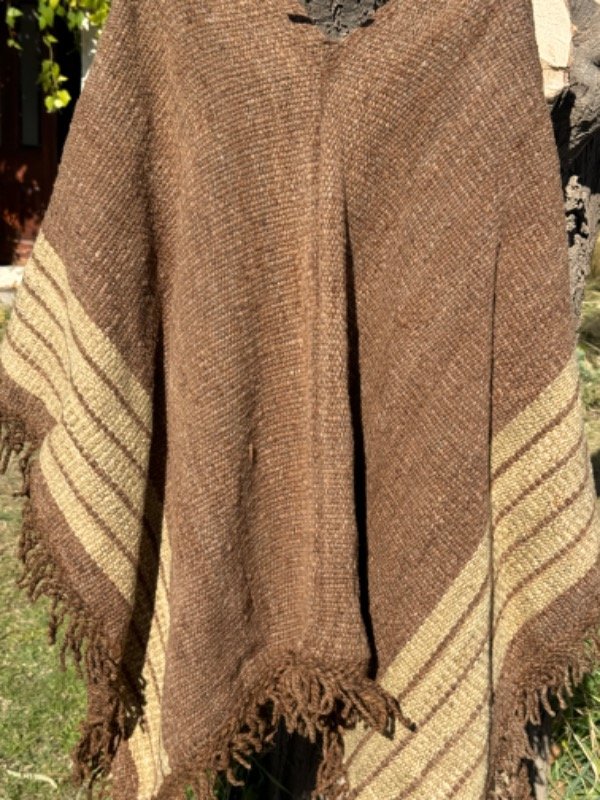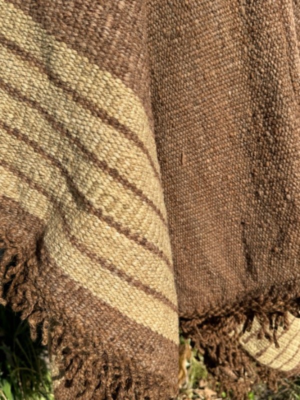 Poncho Tejido en Telar Artesanal de Pedal, 100%Lana de Oveja Hilado Medio a Mano. Tinturas naturales.