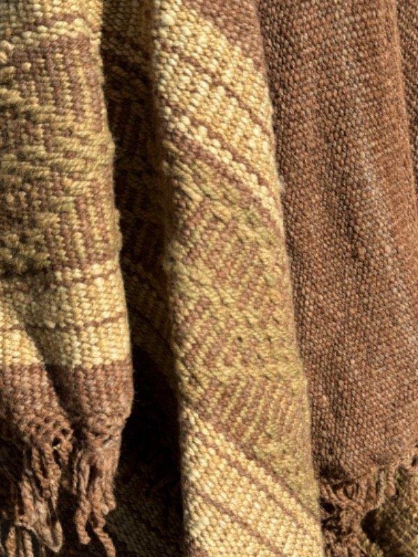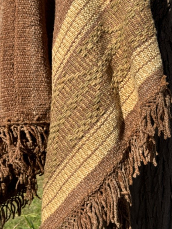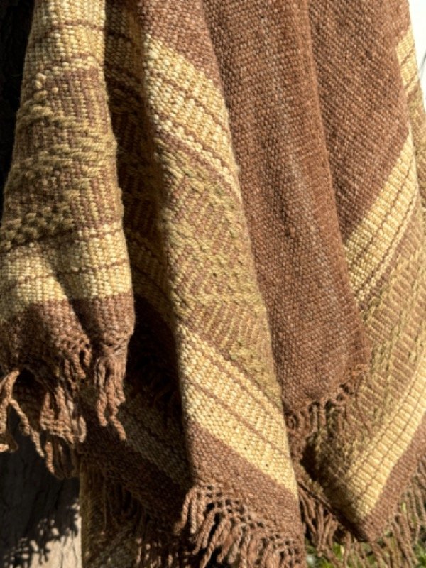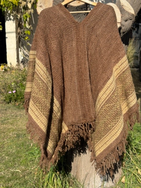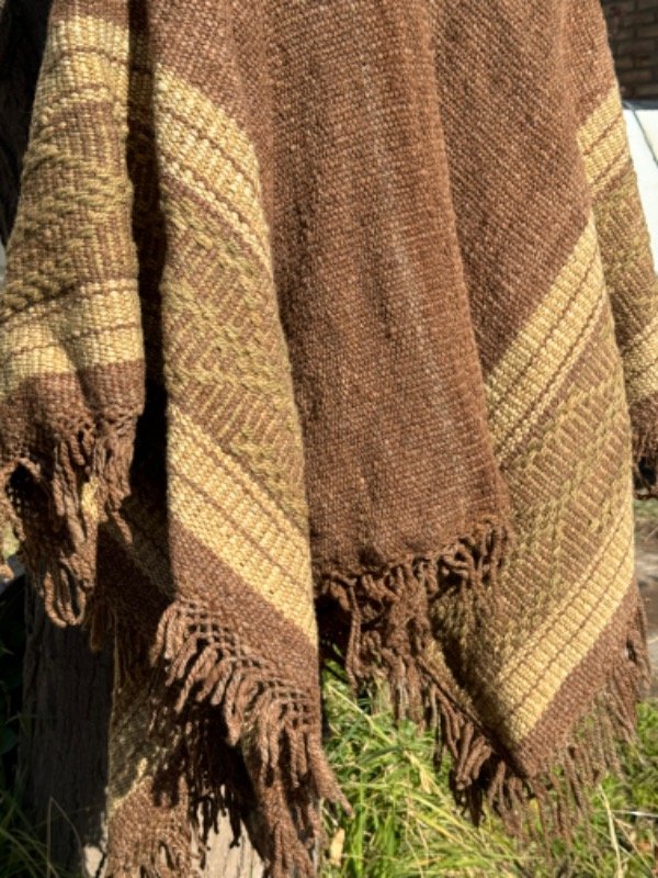 Poncho Tejido en Telar Artesanal de Pedal, 100%Lana de Oveja Hilado Medio a Mano. Tinturas naturales.